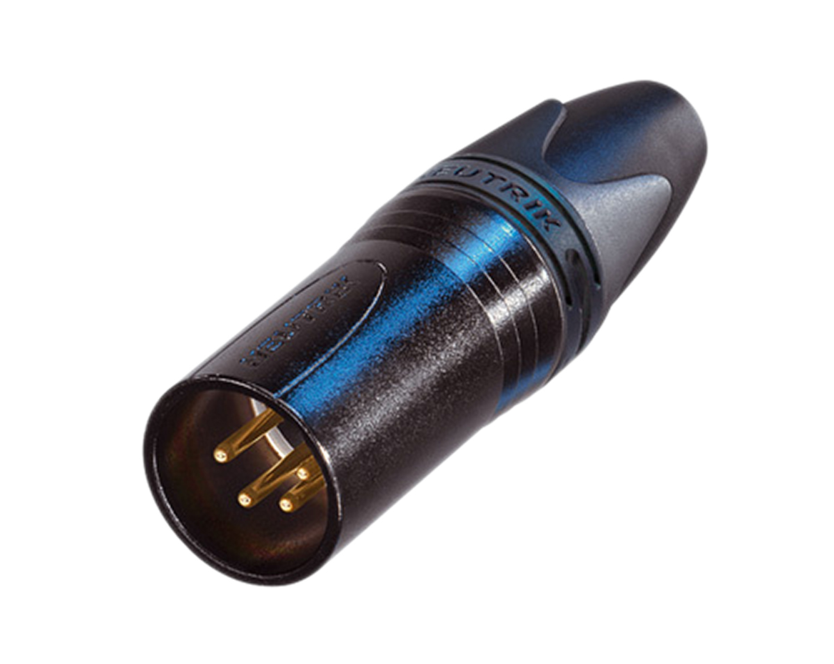 This is 4 Way Cable Mount XLR Connector Male Gold Plated Contacts 50 V ac manufactured by Neutrik. The manufacturer part number is NC4MXX-B. The product has a current rating of 10a. Whereas, the minimum operating temperature of the product is -30°c. The product is available in cable mount configuration. Moreover, the product has a nominal 50 v ac voltage rating. In addition, male is the available "Gender" of the product. It has a decent black colour. The product also features robust zinc housing material. The high-quality gold is used as contact plating material. It allows solder termination method. The product contains 4 contacts. It has a maximum operating temperature of +80°c. It has straight body orientation. The product is made from sturdy brass materials.