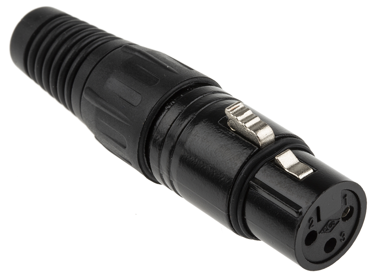 This is 3 Way Cable Mount XLR Connector Female Silver Plated Contacts 250 V ac manufactured by RS Pro. The manufacturer part number is 455-126. The product has a current rating of 16a. Whereas, the minimum operating temperature of the product is -30°c. The product is available in cable mount configuration. Moreover, the product has a nominal 250 v ac voltage rating. In addition, female is the available "Gender" of the product. It has a decent black colour. The product also features robust zinc housing material. The high-quality silver is used as contact plating material. It allows solder termination method. The product contains 3 contacts. It has a maximum operating temperature of +80°c. It has straight body orientation. The product is made from sturdy brass materials.