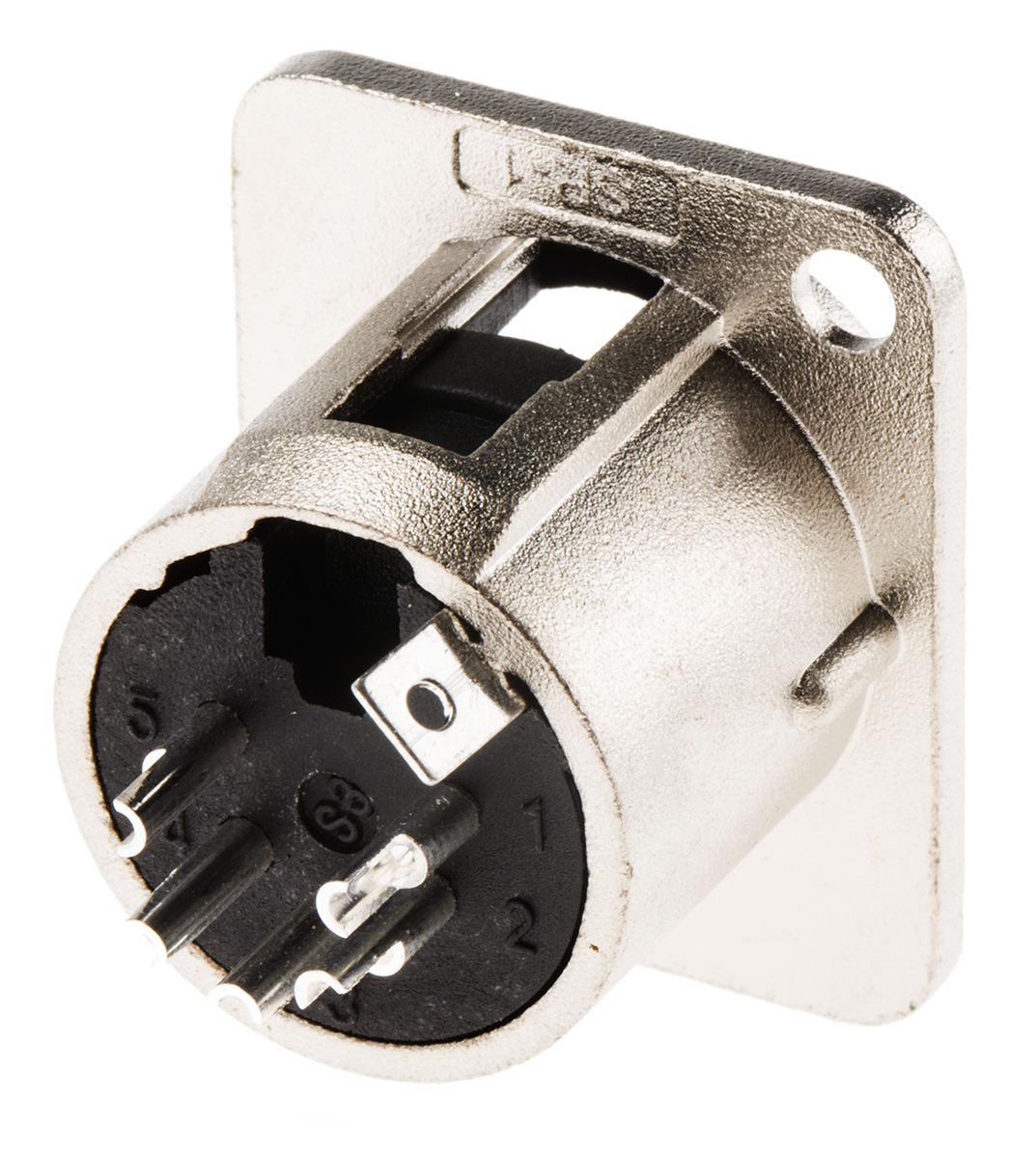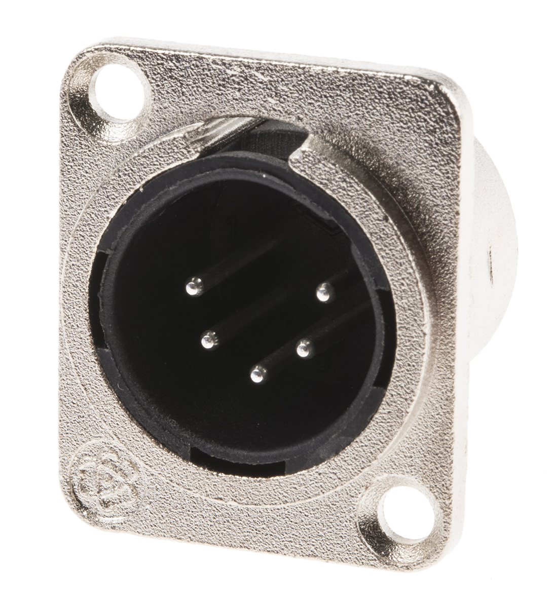 This is 5 Way Panel Mount XLR Connector Male manufactured by RS Pro. The manufacturer part number is 458-030. The product is available in panel mount configuration. In addition, male is the available "Gender" of the product. It has a decent natural colour. The product contains 5 contacts. It has straight body orientation.