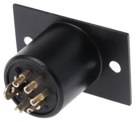 This is 5 Way Panel Mount XLR Connector Male Silver Plated Contacts manufactured by RS Pro. The manufacturer part number is 457-910. The product is available in panel mount configuration. In addition, male is the available "Gender" of the product. It has a decent black colour. The product also features robust zinc housing material. It has straight body orientation. The high-quality silver is used as contact plating material. It allows solder termination method. The product contains 5 contacts. The product is made from sturdy brass materials.
