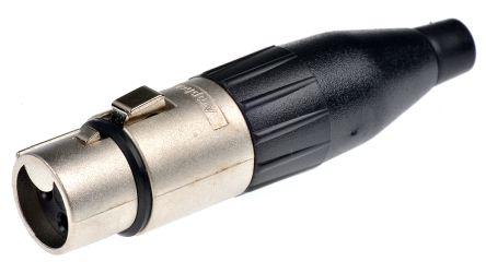 This is Vertical Cable Mount XLR Connector Female Tin Plated Contacts 120 V ac manufactured by RS Pro. The manufacturer part number is 453-353. The product has a current rating of 15a. The product is available in cable mount configuration. Moreover, the product has a nominal 120 v ac voltage rating. In addition, female is the available "Gender" of the product. It has a decent black colour. The high-quality tin is used as contact plating material. It allows solder termination method. It has vertical body orientation. The product is made from sturdy phosphor bronze materials.