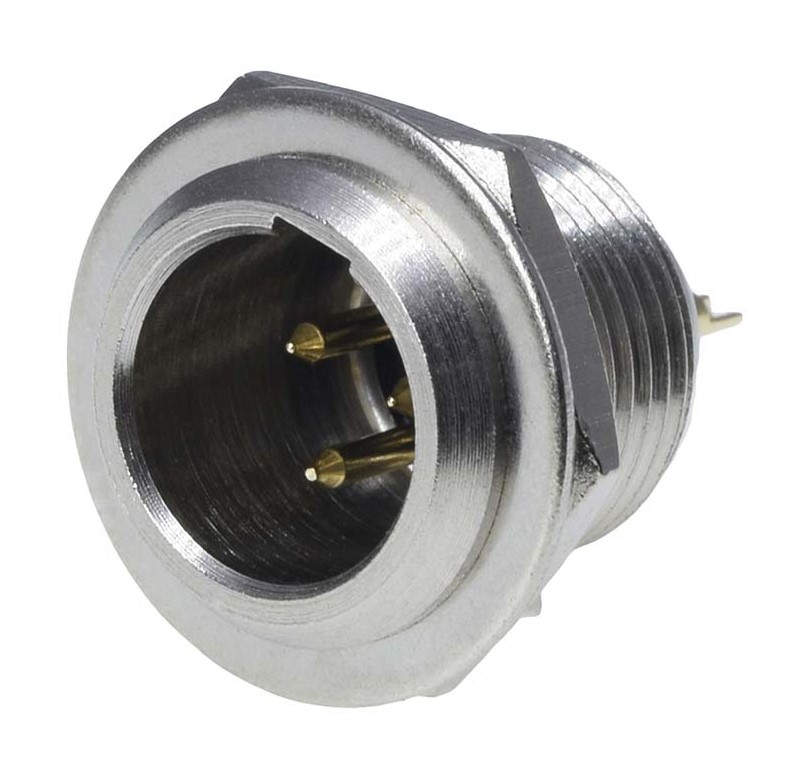 This is Panel Mount XLR Connector Male 50 V 3 Way Gold Plating manufactured by RS PRO. The manufacturer part number is 208-5186. The product has a current rating of 7.5a. The product is available in panel mount configuration. Moreover, the product has a nominal 50 v voltage rating. In addition, male is the available "Gender" of the product. It has a decent silver colour. mini xlr connector Connector type offer robust functionality. The high-quality gold is used as contact plating material. It allows solder termination method. The product contains 3 contacts. It has straight body orientation.