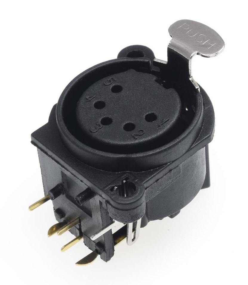 This is Panel Mount XLR Connector Female 50 V 5 Way Gold Plating manufactured by RS PRO. The manufacturer part number is 208-5195. The product has a current rating of 7.5a. The product is available in panel mount configuration. Moreover, the product has a nominal 50 v voltage rating. In addition, female is the available "Gender" of the product. It has a decent black colour. xlr Connector type offer robust functionality. The high-quality gold is used as contact plating material. It allows solder termination method. The product contains 5 contacts. It has straight body orientation.