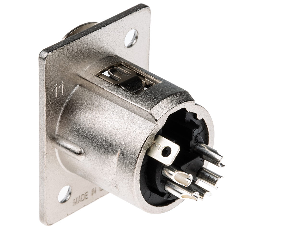 This is Panel Mount XLR Connector Female 50 V 5 Way Silver over Nickel Plating manufactured by Neutrik. The manufacturer part number is NC5FP-1. The product has a current rating of 7.5a. Whereas, the minimum operating temperature of the product is -30°c. The product is available in panel mount configuration. Moreover, the product has a nominal 50 v voltage rating. In addition, female is the available "Gender" of the product. It has straight body orientation. The product also features robust nylon housing material. The high-quality silver over nickel is used as contact plating material. It allows solder termination method. The product contains 5 contacts. It has a maximum operating temperature of +80°c. The product is made from sturdy brass materials.