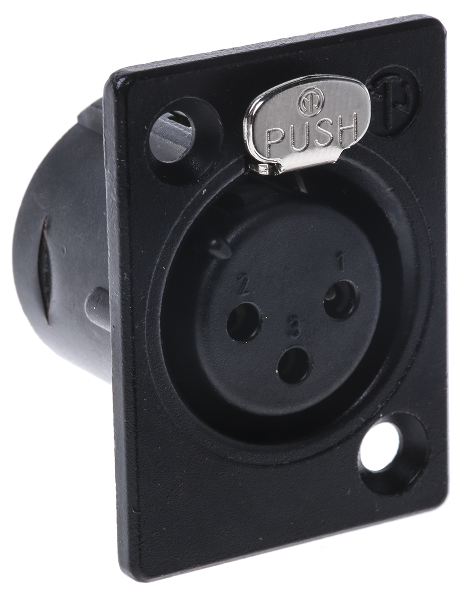 This is Panel Mount XLR Connector Female 50 V 3 Way Silver over Nickel Plating manufactured by Neutrik. The manufacturer part number is NC3FP-1-BAG. The product has a current rating of 16a. Whereas, the minimum operating temperature of the product is -30°c. The product is available in panel mount configuration. Moreover, the product has a nominal 50 v voltage rating. In addition, female is the available "Gender" of the product. It has a decent black metallic colour. The product also features robust zinc housing material. The high-quality silver over nickel is used as contact plating material. It allows solder termination method. The product contains 3 contacts. It has a maximum operating temperature of +80°c. It has straight body orientation. The product is made from sturdy bronze materials.