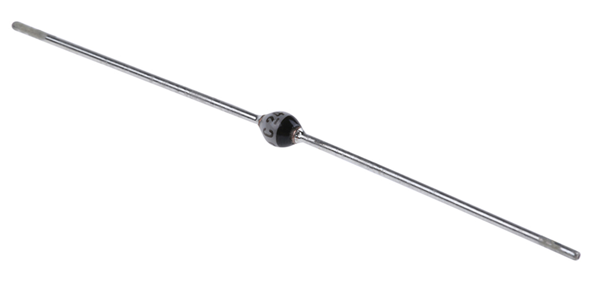This is Zener Diode 24V 6% 3.25 W Through Hole 2-Pin SOD-57 manufactured by Vishay. The manufacturer part number is BZT03C24-TAP. Its nominal Zener voltage is 24v. The given dimensions of the product include 3.6 (dia.) x 4mm. The product is available in through hole configuration. While it has 15ω of maximum Zener impedance. The product has a typical 0.06 %/°c, 0.11%/°c voltage temperature coefficient . It has a maximum operating temperature of +175 °c. The product has a maximum 1µa of reverse leakage current. Provides up to 3.25 w maximum power dissipation. The package is a sort of sod-57. It consists of 1 elements per chip. The Zener is a type of transient suppressor Zener with unique features. It has 6% Zener voltage tolerance. The diode features a single configuration. It contains 2 pins. In addition, it has 25ma test current.