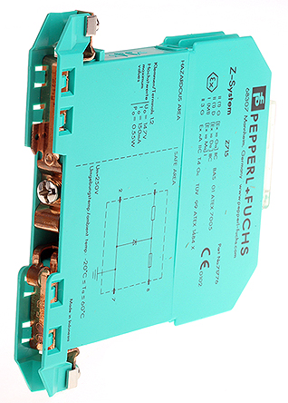 The Pepperl + Fuchs Z715 is a single‑channel zener barrier designed for intrinsic safety applications that interface analogue or signal circuits between safe and hazardous areas. It supports a compact DIN-rail-mounting format in a modular housing. With positive polarity and approvals for zone/division hazardous area use, it provides energy‑limited protection while retaining signal integrity for process instrumentation.