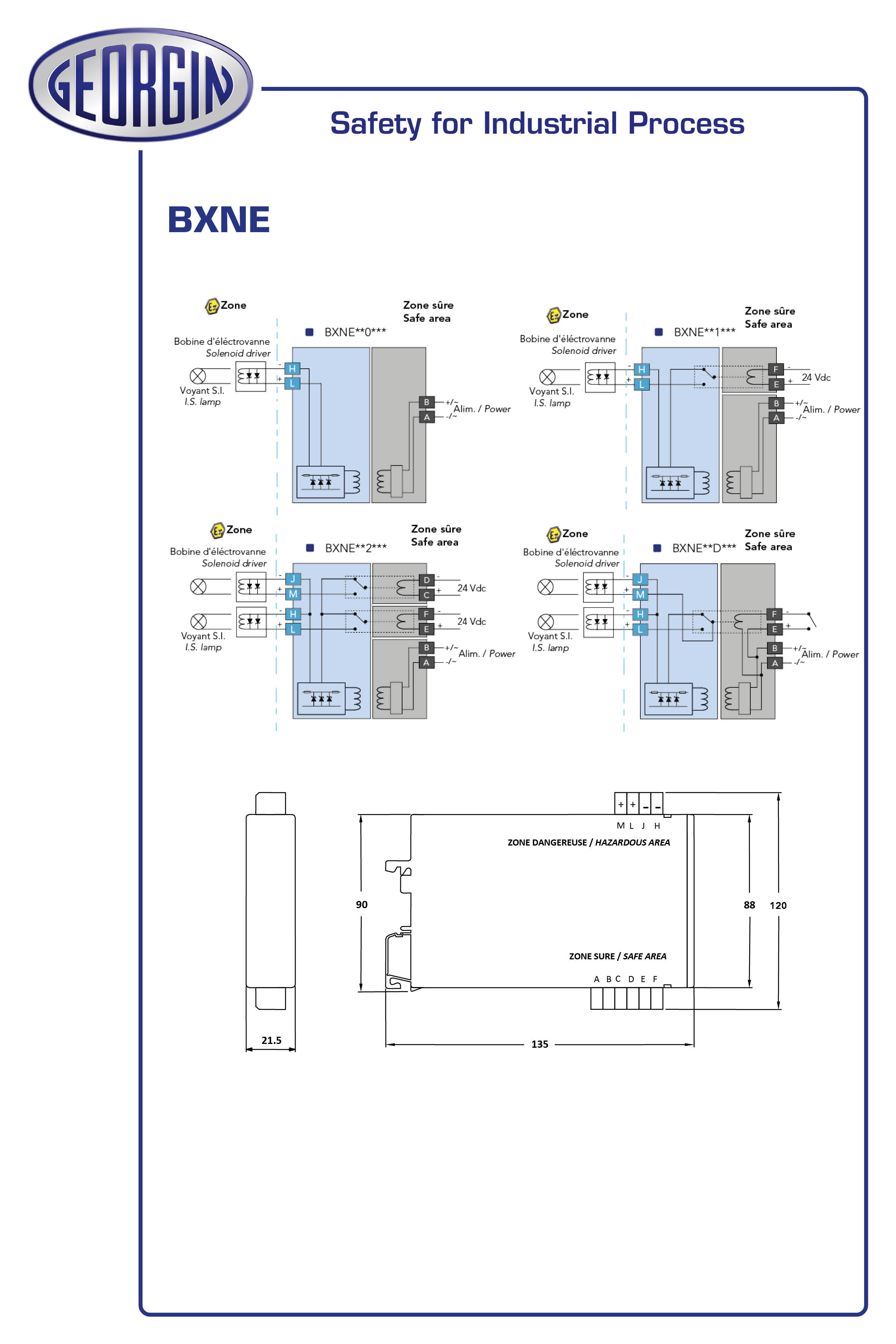 This is Galvanic Barrier manufactured by GEORGIN. The manufacturer part number is BXNE0100E2. It also carries 160ma maximum current. It has a maximum 23,5v voltage . The product bxne, is a highly preferred choice for users. It is a galvanic barrier barrier. The product is certified with atex hazardous area certification. It is supplied with 1 channels. Features 24v dc supply voltage. Whereas, the minimum operating temperature of the product is -20°c. The product has -20°c to 60°c of operating temperature range. It has a maximum operating temperature of +60°c.