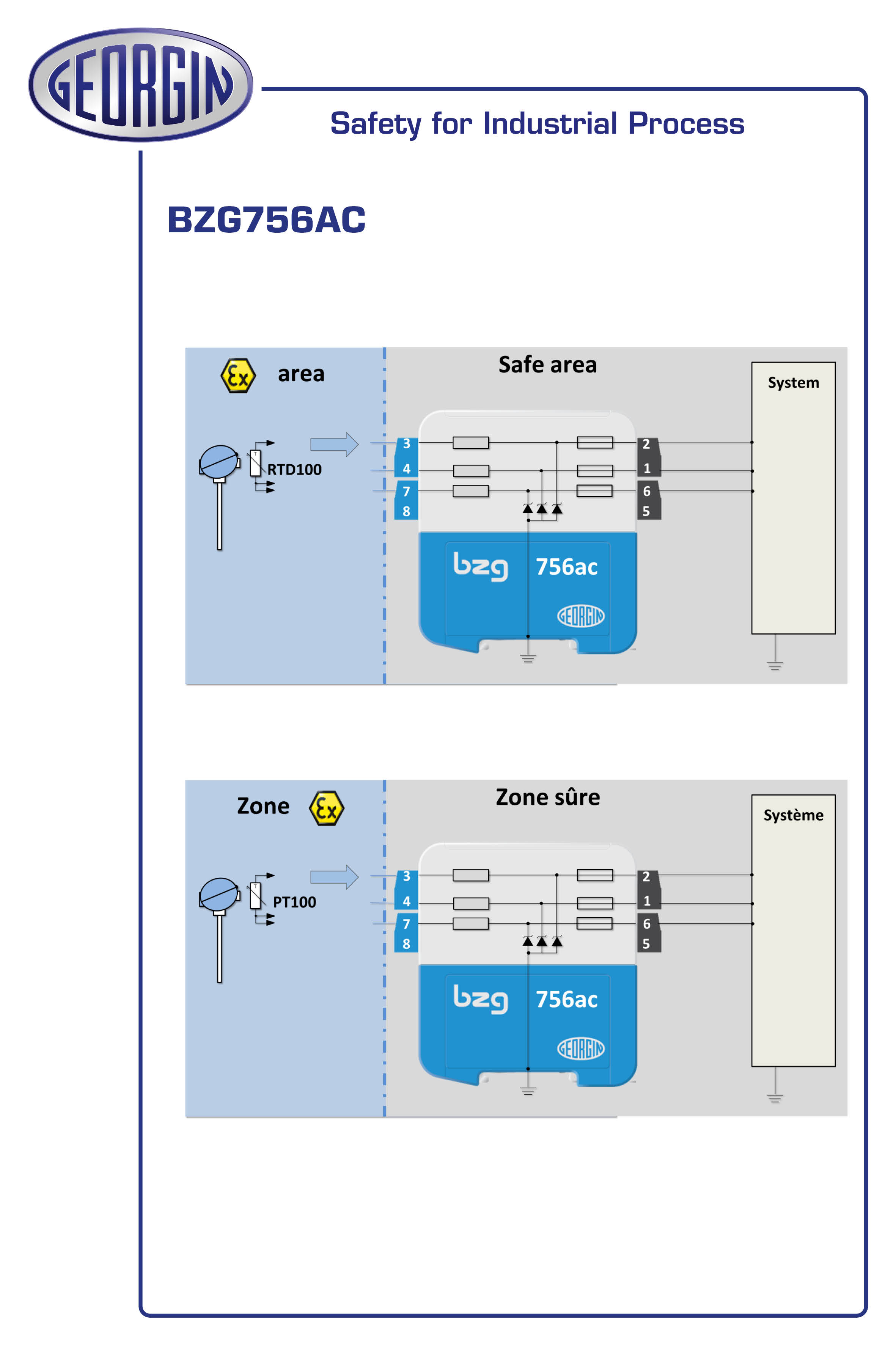 This is Zener Barrier manufactured by GEORGIN. The manufacturer part number is BZG756AC. It also carries 214,3ma maximum current. It has a maximum 3,15v voltage . The product bzg, is a highly preferred choice for users. It is a zener barrier barrier. The product is certified with atex hazardous area certification. It is supplied with 1 channels. Whereas, the minimum operating temperature of the product is -20°c. The product has -20°c to 60°c of operating temperature range. It has a maximum operating temperature of +60°c.